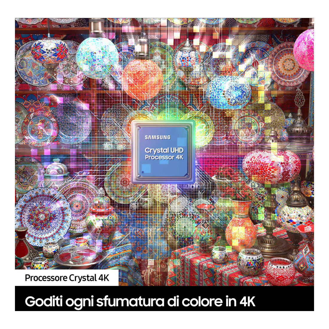 Samsung TV Crystal UHD 4K 75” UE75DU8570UXZT Smart TV Wi-Fi Titan Gray 2024, Processore Crystal 4K, 4K Upscaling, AirSlim Design, OTS Lite. Dimensioni diagonale schermo: 190,5 cm (75″), Risoluzione del display: 3840 x 2160 Pixel, Tipologia HD: 4K Ultra HD, Tecnologia display: LED, Forma dello schermo: Piatto. Smart TV. Tecnologia di interpolazione del movimento: Motion Xcelerator. Formato del segnale digitale: DVB-C, DVB-S2, DVB-T2. Wi-Fi, Collegamento ethernet LAN. Colore del prodotto: Grigio