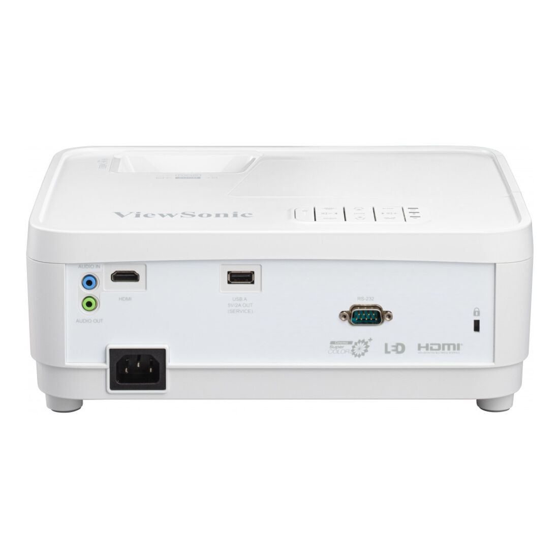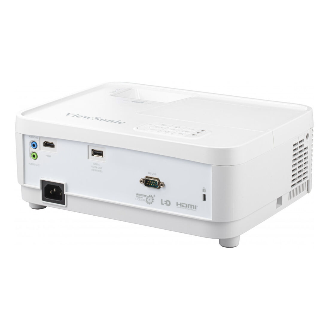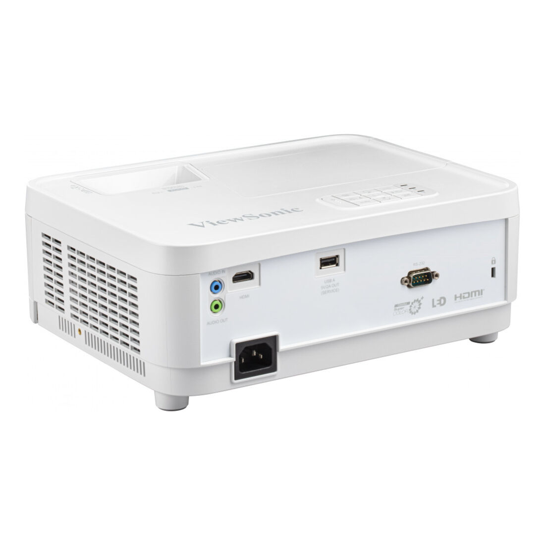 Viewsonic LS500WH. Luminosità proiettore: 2000 ANSI lumen, Risoluzione nativa del proiettore: WXGA (1280×800), Rapporto di contrasto: 3000000:1. Tipo di sorgente luminosa: LED, Durata della sorgente luminosa: 30000 h. Messa a fuoco: Auto, Lunghezza focale: 22 – 24.1 mm, Range di apertura (F-F): 2,56 – 2,68. Formato video analogico: NTSC, PAL, SECAM, Risoluzioni grafiche supportate: 640 x 512, 640 x 640, 640 x 160, 640 x 352, 640 x 360, 640 x 400, 640 x 480 (VGA), 640 x 544, 640…, Modalità video supportate: 480i, 480p, 576i, 576p, 720p, 1080i, 1080p. Tipo interfaccia seriale: RS-232