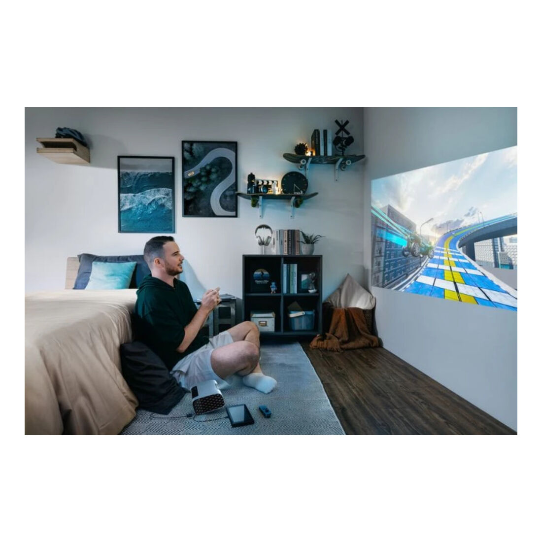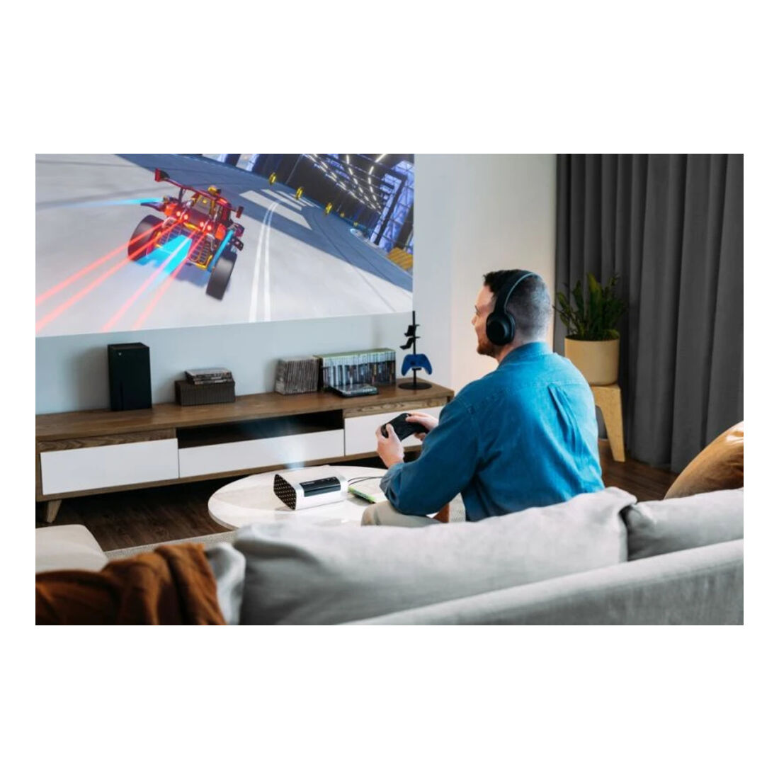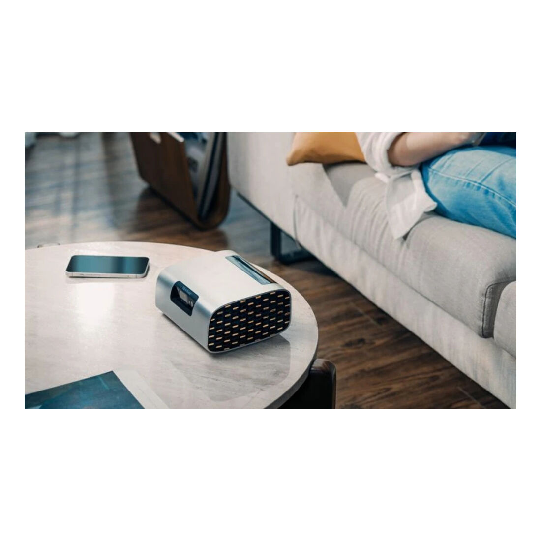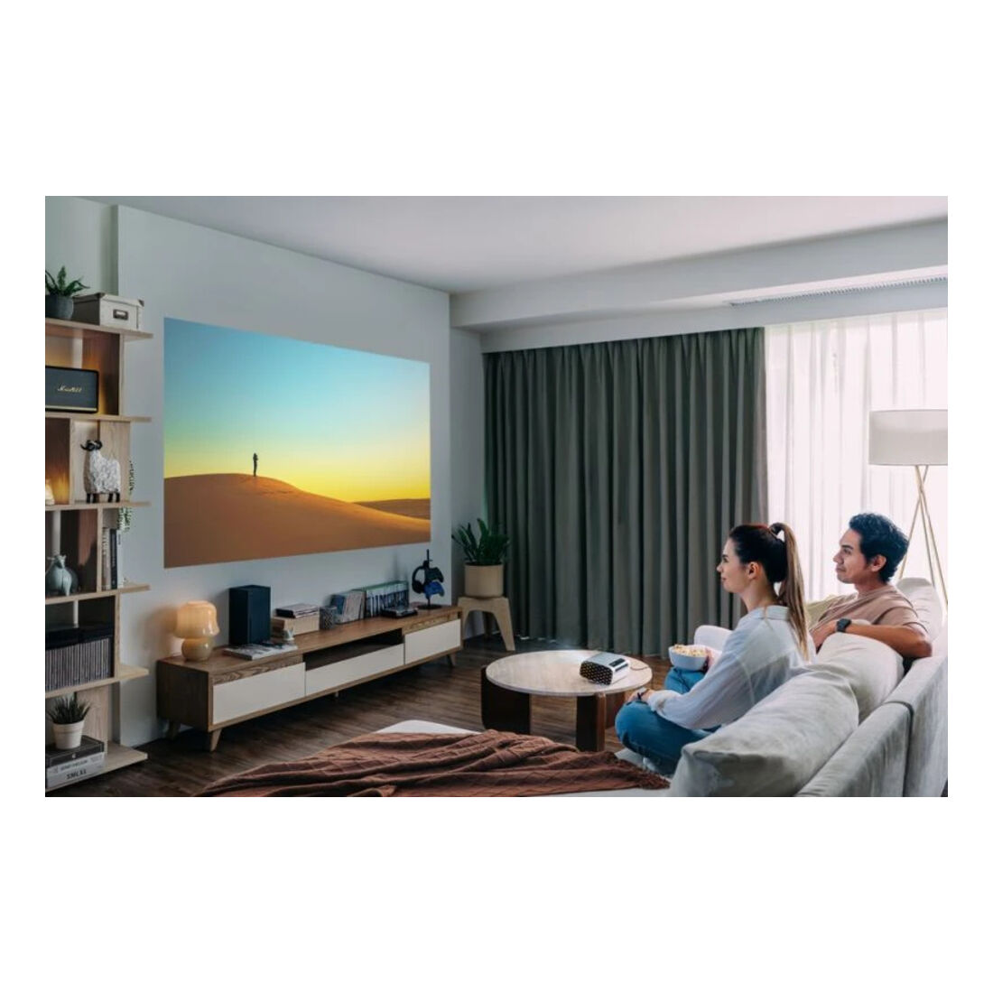Viewsonic M10E. Luminosità proiettore: 2200 ANSI lumen, Risoluzione nativa del proiettore: 1080p (1920×1080), Rapporto di contrasto: 3500000:1. Tipo di sorgente luminosa: Laser, Durata della sorgente luminosa: 20000 h, Durata della sorgente luminosa (modalità risparmio): 30000 h. Messa a fuoco: Auto, Lunghezza focale fissa: 6,25 mm, Rapporto di Zoom: 0.8-1:1. Risoluzioni grafiche supportate: 640 x 480 (VGA), 3840 x 2160, Modalità video supportate: 480i, 480p, 576i, 576p, 720p, 1080i, 1080p, 1440p. Tipo di connettore HDMI: Taglia piena