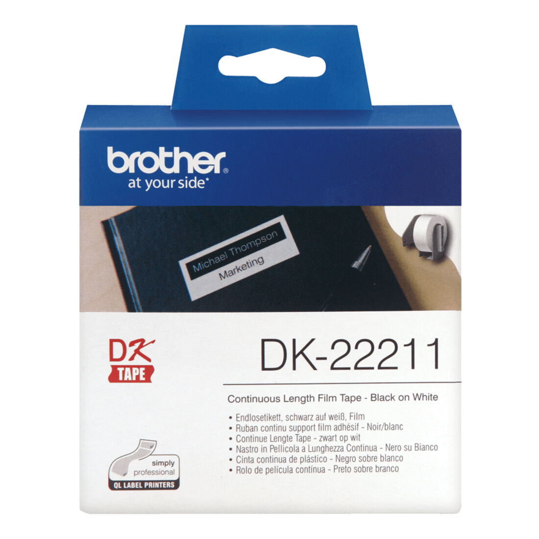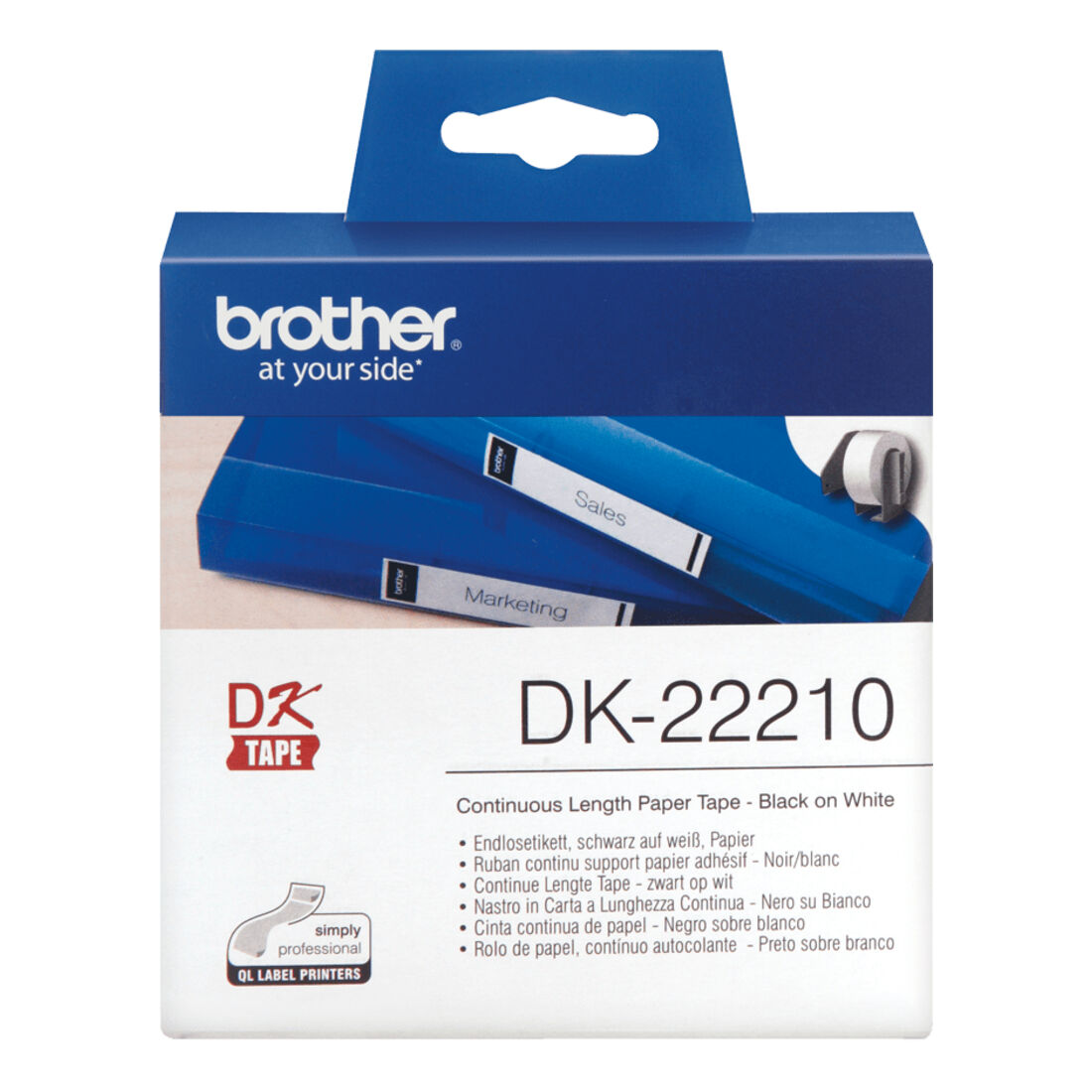 Brother DK-22210 nastro per etichettatrice Nero su bianco