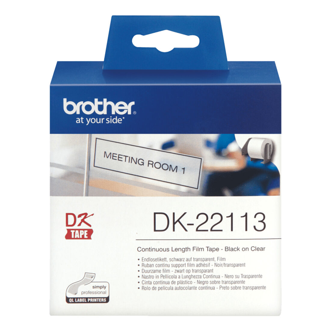 Brother DK-22113 nastro per etichettatrice Nero trasparente