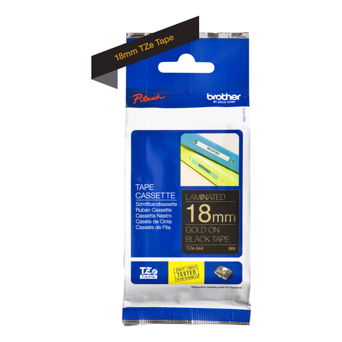 Brother TZE-344 nastro per etichettatrice Oro su nero