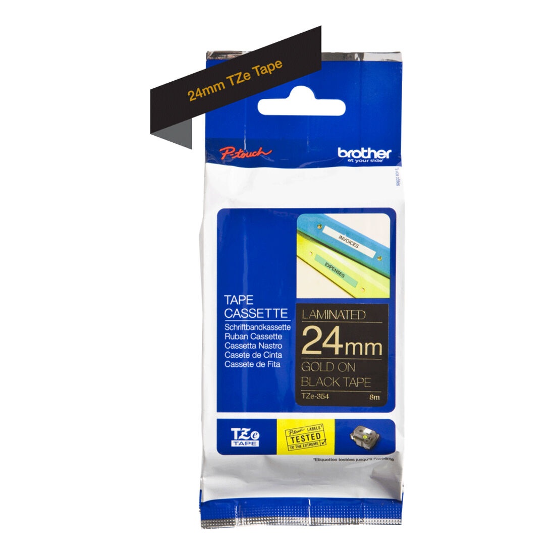 Brother TZE-354 nastro per etichettatrice Oro su nero