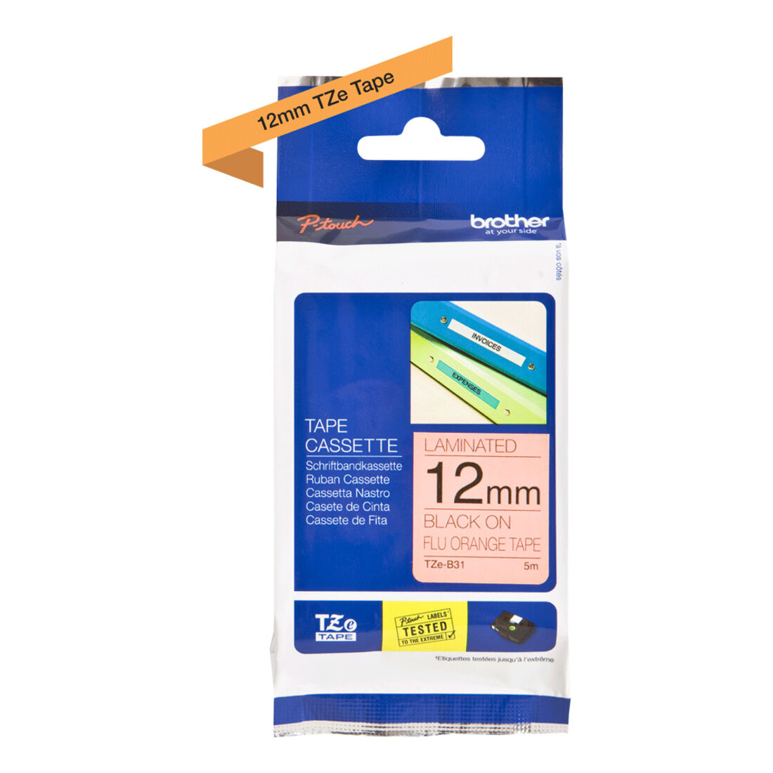 Brother TZE-B31 nastro per etichettatrice Nero su arancione fluorescente
