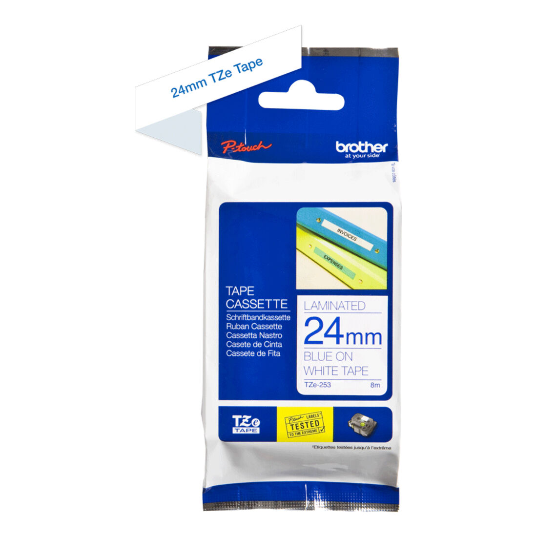 Brother TZE-253 nastro per etichettatrice Blu su bianco