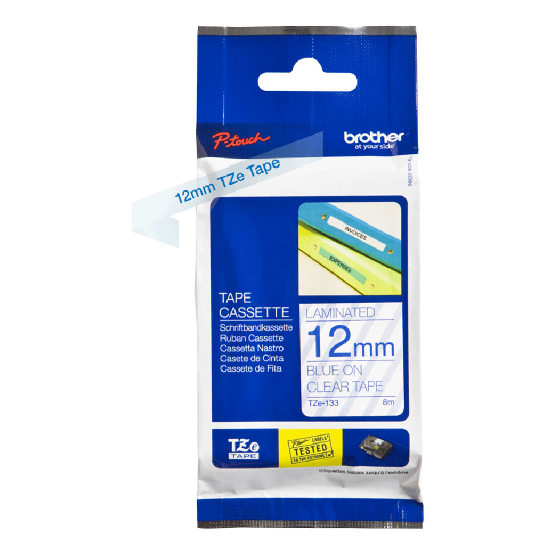 Brother TZE-133 nastro per etichettatrice Blu su trasparente