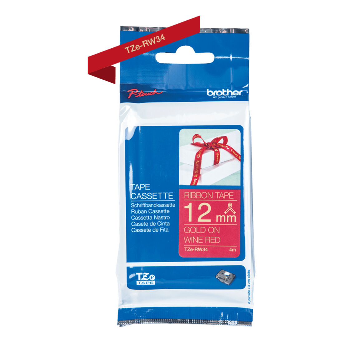 Brother TZE-RW34 nastro per etichettatrice Oro su rosso