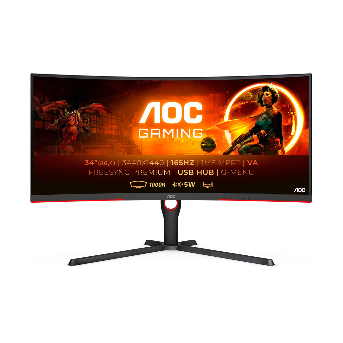 AOC G3 CU34G3S/BK LED display 86,4 cm (34″) 3440 x 1440 Pixel Wide Quad HD Nero, Rosso