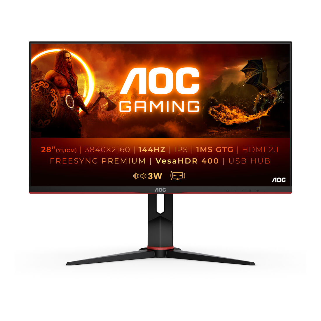 AOC G2 U28G2XU2/BK LED display 71,1 cm (28″) 3840 x 2160 Pixel 4K Ultra HD Nero, Rosso