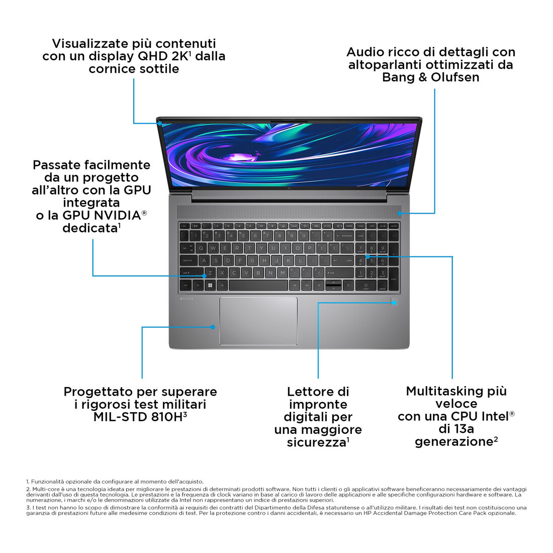 HP ZBook 8 G1i Wolf Pro Security Edition Intel Core Ultra 7 255H Workstation mobile 35,6 cm (14″) WUXGA 32 GB DDR5-SDRAM 1 TB SSD NVIDIA RTX 500 Ada Wi-Fi 7 (802.11be) Windows 11 Pro AI PC Argento