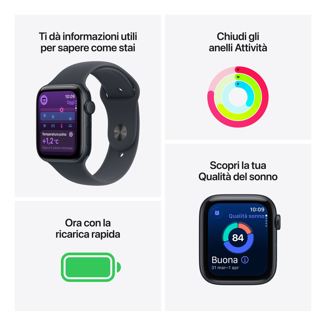 Apple Watch SE (3nd generation) SE 3 GPS 44mm Cassa Alluminio Mezzanotte con Sport Band Mezzanotte – S/M