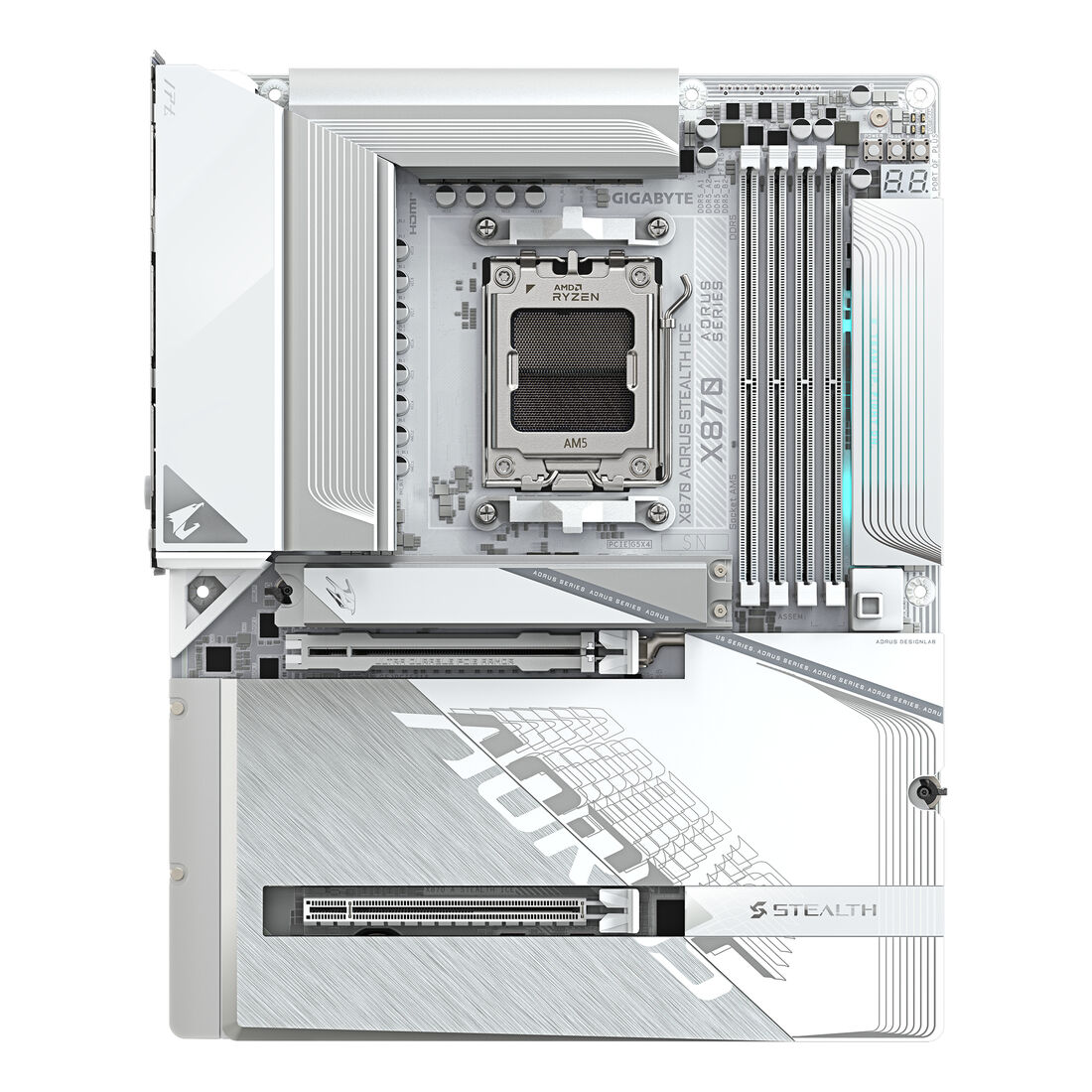GIGABYTE X870 AORUS STEALTH ICE Scheda Madre – Supporta CPU AMD Ryzen 9000, VRM digitale a 16+2+2 fasi, fino a 8200 MHz DDR5 (OC), 2 x PCIe 5.0 + 2 x PCIe 4.0, Wi-Fi 7, LAN 5 GbE, USB 4