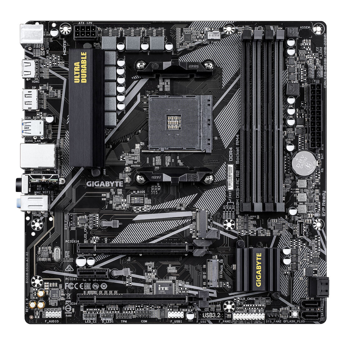 GIGABYTE B550M DS3H AC R2 Scheda madre – CPU AMD Ryzen 5000, VRM a 5+3 fasi, fino a 4733 MHz DDR4 (O.C.), 1x M.2 PCIe 4.0 + 1x M.2 PCIe 3.0, Wi-Fi 5, LAN 1 GbE, USB 3.2 Gen 1