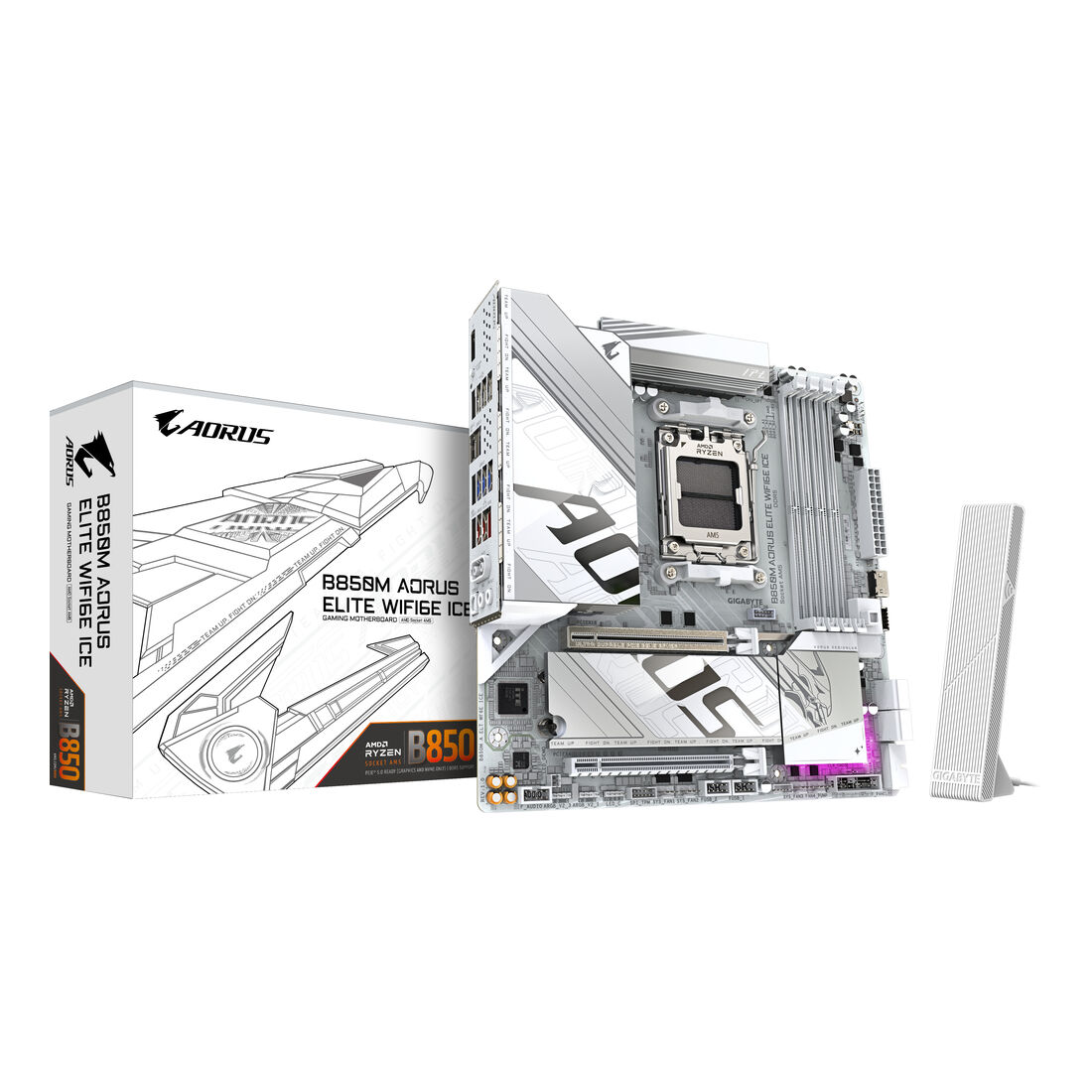 GIGABYTE B850M AORUS ELITE WIFI6E ICE Scheda Madre – Processori AMD Ryzen Serie 9000, 12+2+1 fasi VRM digitali, fino a 8200MHz DDR5 (OC), 1xPCIe 5.0 + 1xPCIe 4.0 M.2, LAN 2.5, WIFI 7, USB 3.2 Gen 2