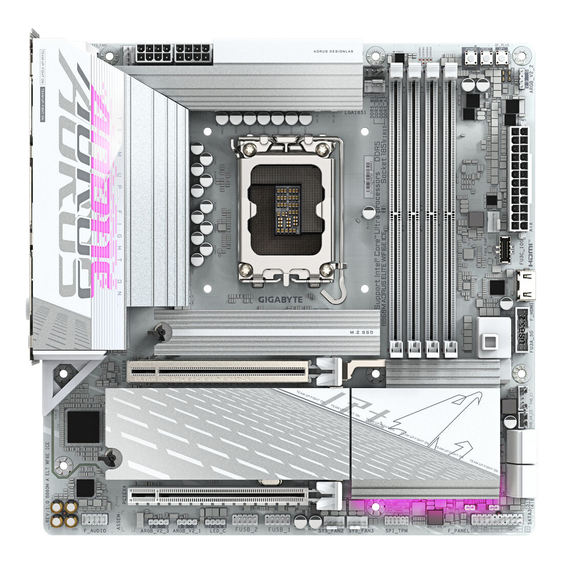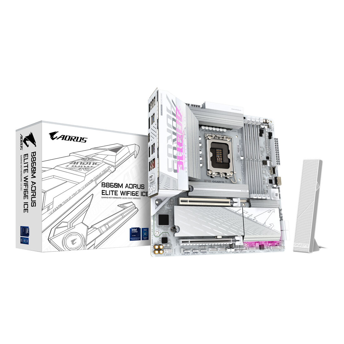 GIGABYTE B860M AORUS ELITE WF6E ICE Scheda madre – CPU Intel Core Ultra, VRM a 12+1+2+1 fasi, fino a 9200MHz DDR5, 1xPCIe 5.0 + 2xPCIe 4.0 M.2, LAN 2,5 GbE, WIFI 6E, USB 4