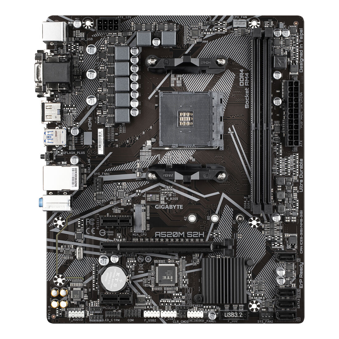 GIGABYTE Scheda madre A520M S2H – Supporta CPU AMD Ryzen serie 5000 AM4, VRM digitale puro 4+3 fasi, fino a 5100MHz DDR4 (OC), PCIe 3.0 x4 M.2, LAN GbE, USB 3.2 Gen 1
