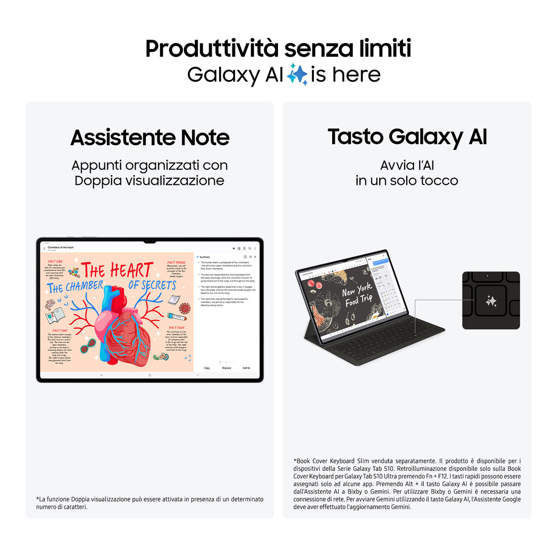 Samsung Galaxy Tab S10 Ultra, Tablet AI, Display 14.6″ Dynamic AMOLED 2X, 5G, RAM 12GB, 256GB, 11.200 mAh, Android 14, IP68, Gray, [Versione italiana] 2024